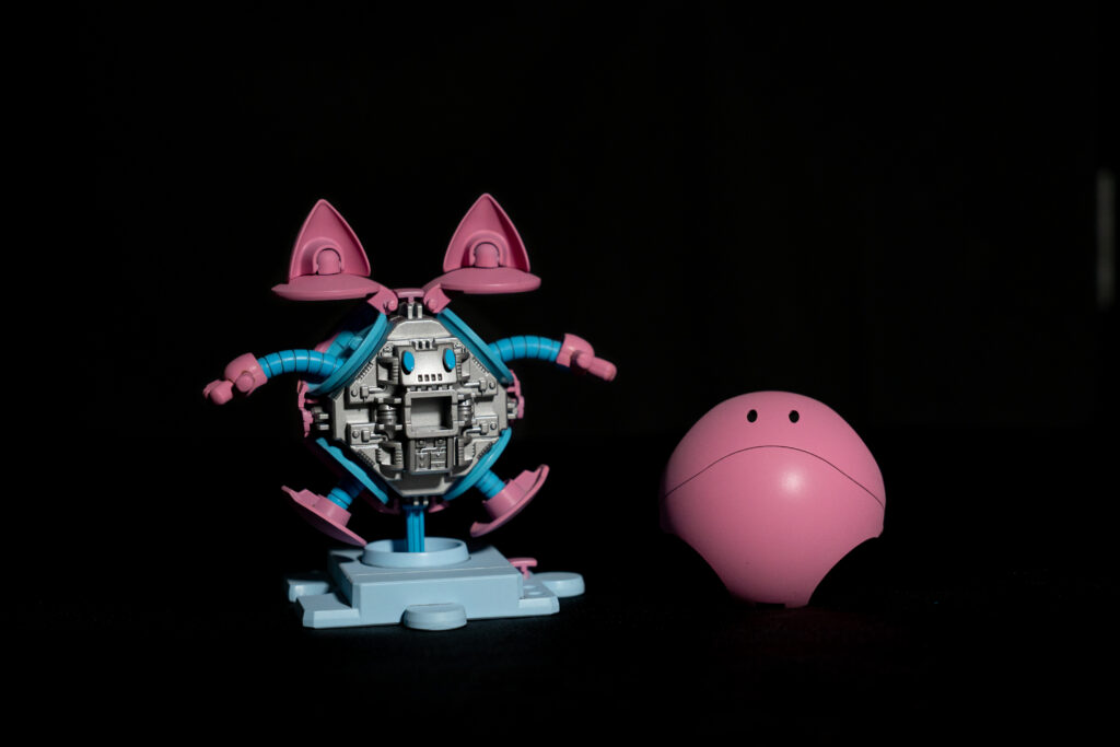 I found the haropla a great starter kit with low part counts and good size. I tried painting the ears already attached to the “shoulder” plates and had mixed results. I also experimented with using liquid masking on the eyes after painting them with blue first before painting the rest of the body with its metallic grey.
